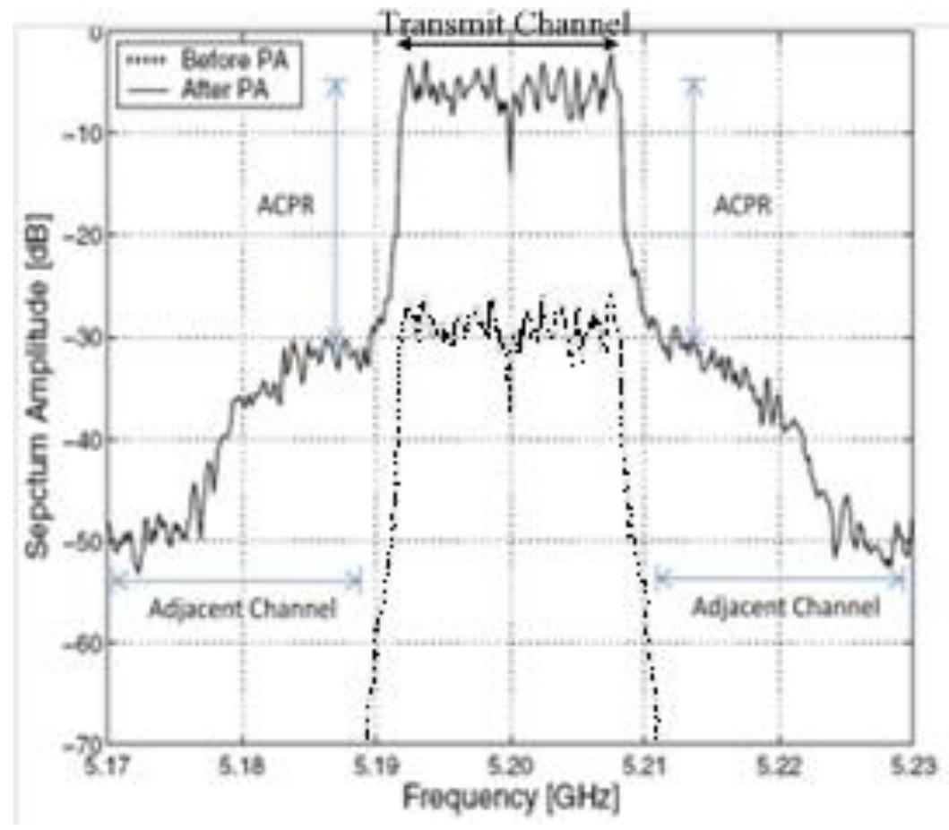 8: acpr illustration in pa input and output spectrum.