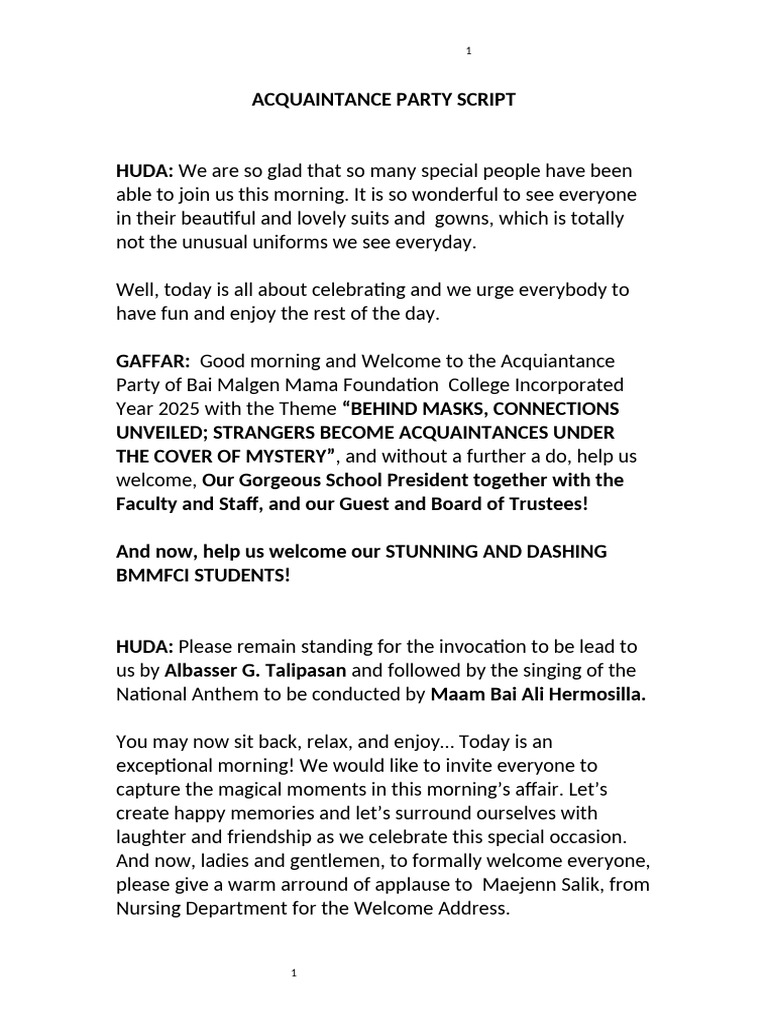 MC Script FOR Acquaintance Party - MC SCRIPT FOR ACQUAINTANCE PARTY ...