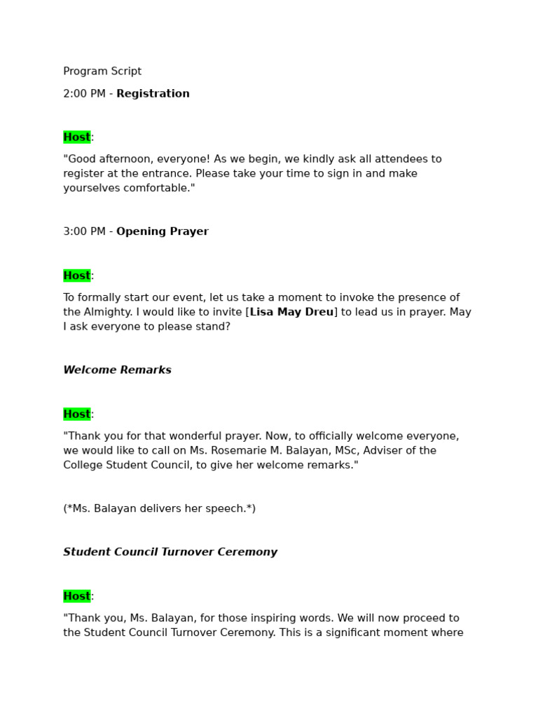 Emcee Script for Induction Program & Acquaintance Party 2024 - Studocu