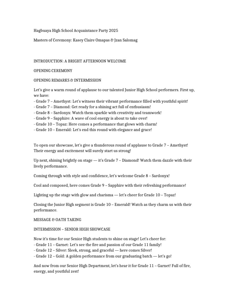 Hagbuaya High School Acquaintance Party 2025 | PDF