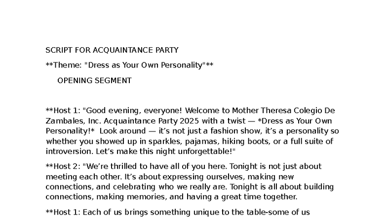 SCRIPT FOR ACQUAINTANCE PARTY 2025: Opening Segment and Awards - Studocu