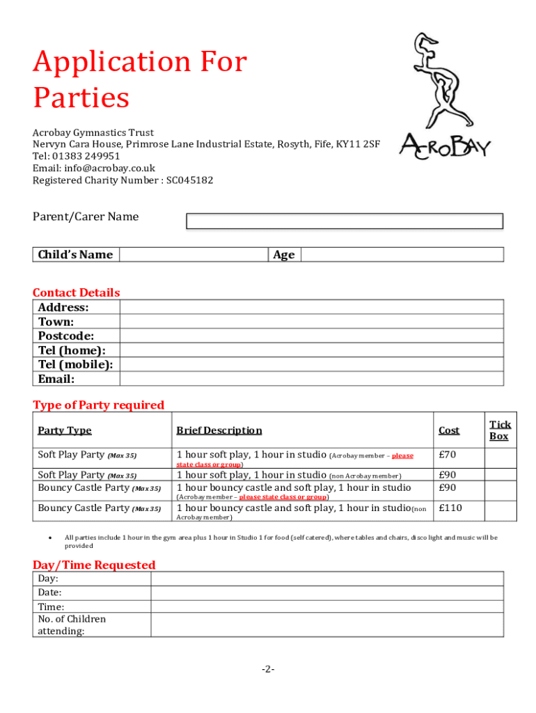 Fillable Online Acrobay Gymnastics Trust, DunfermlineSports Coaching ...