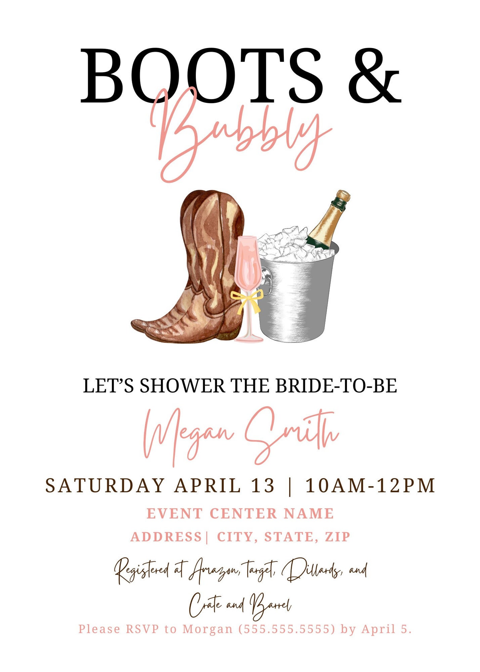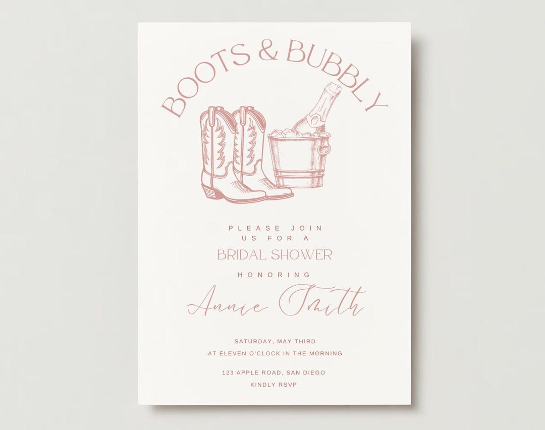 Best 10 Boots And Bubbly Hand Drawn Bridal Shower Invitation – Artofit
