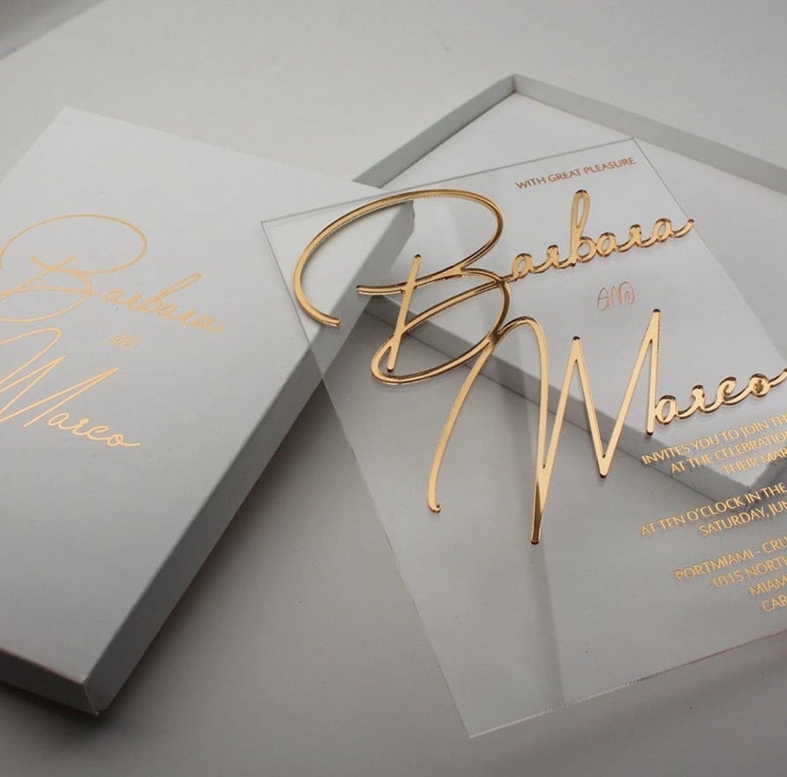 Custom Photo Acrylic Wedding Invitation, Gold Acrylic Invites, Acrylic ...