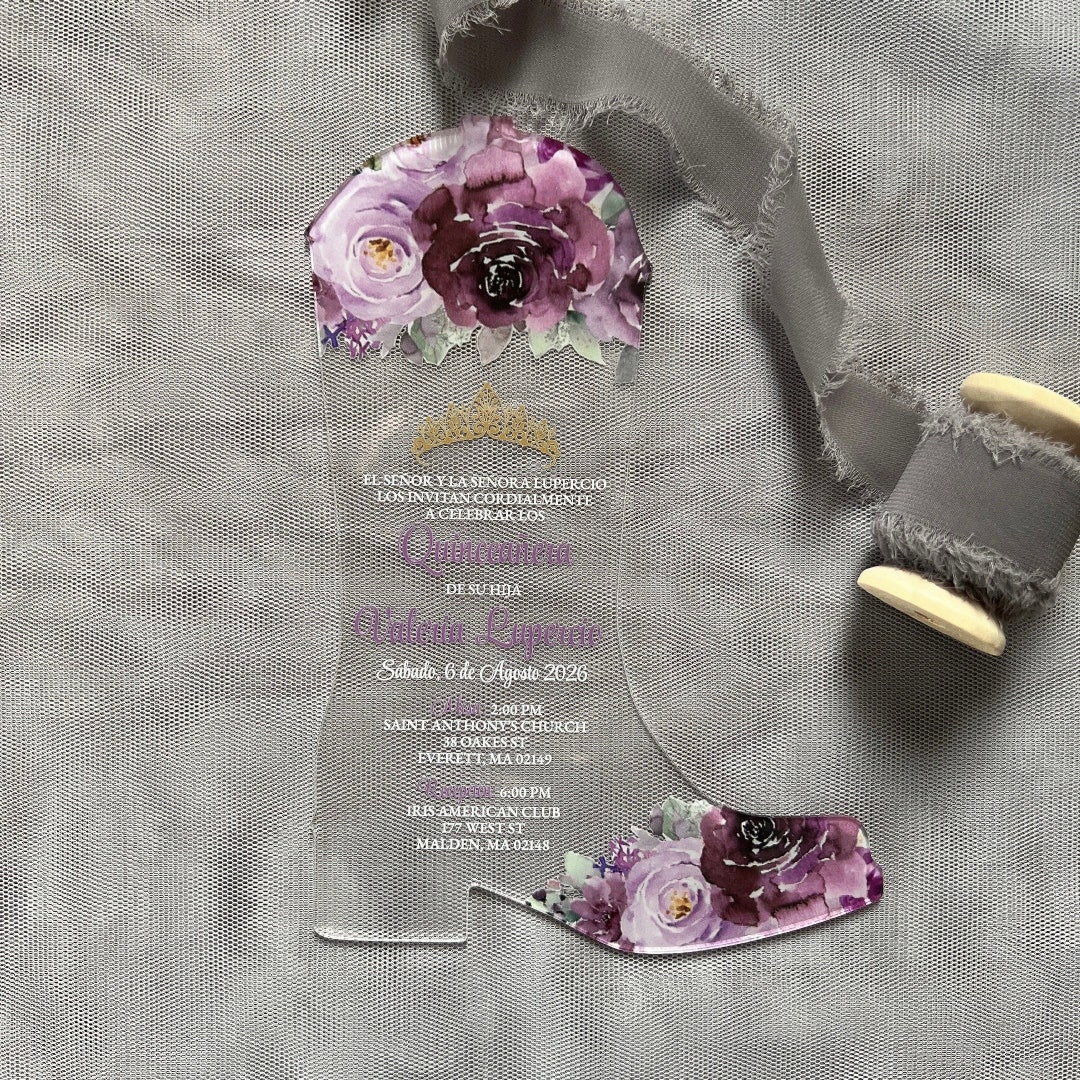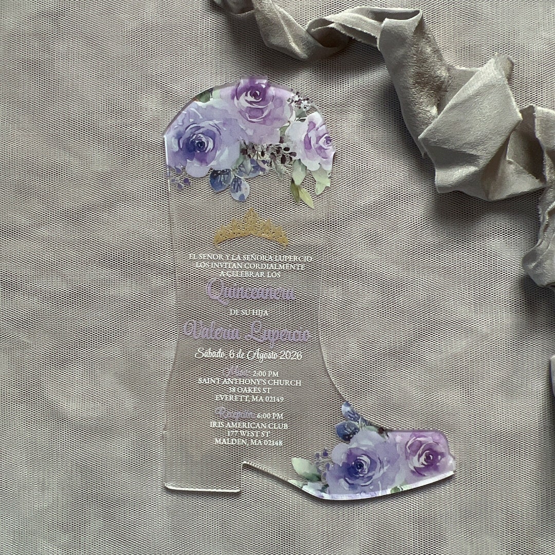 Acrylic Quinceañera Invitation: Violet Roses, Cowgirl Boot - Etsy