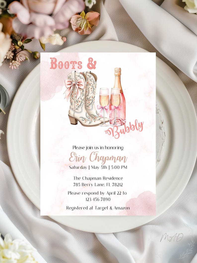 Boots & Bubbly Invite - Etsy
