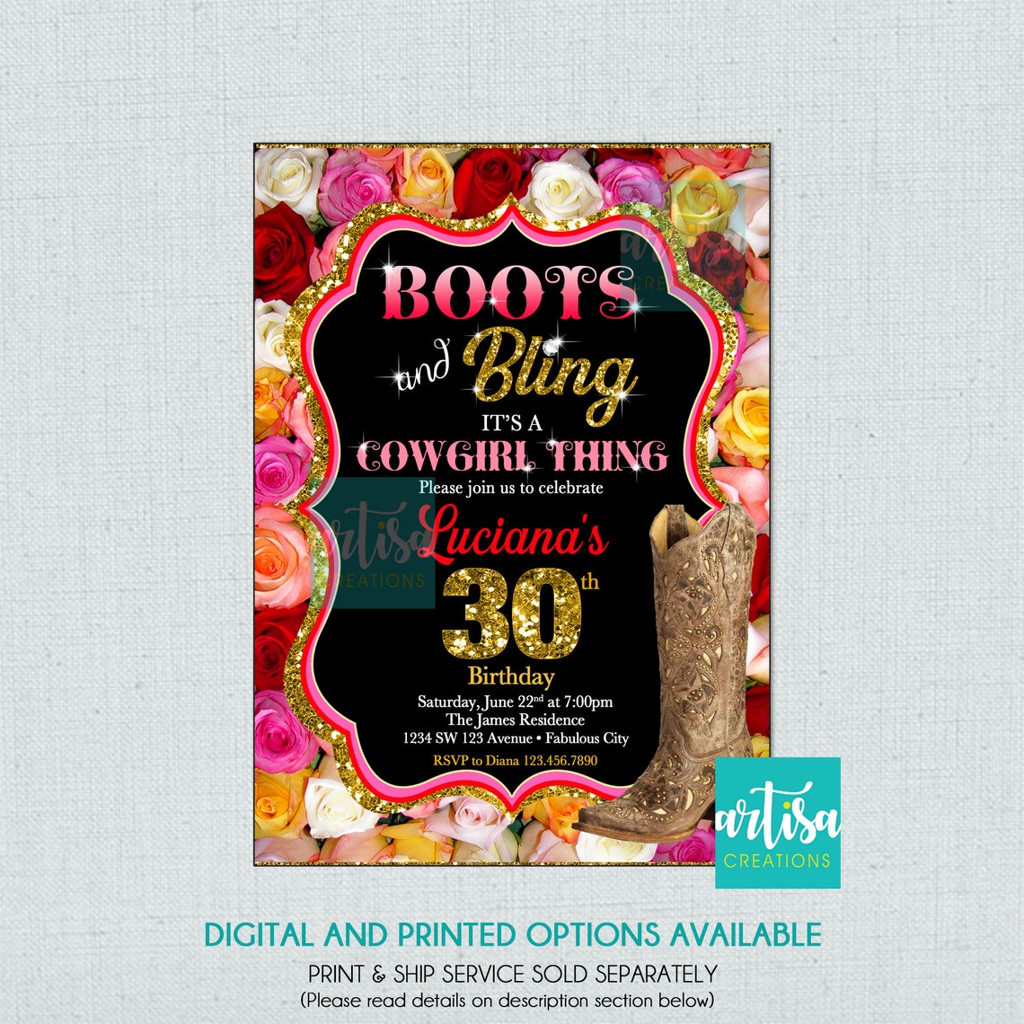 Boots and Bling Invitation Roses Boots and Bling It's a | Etsy