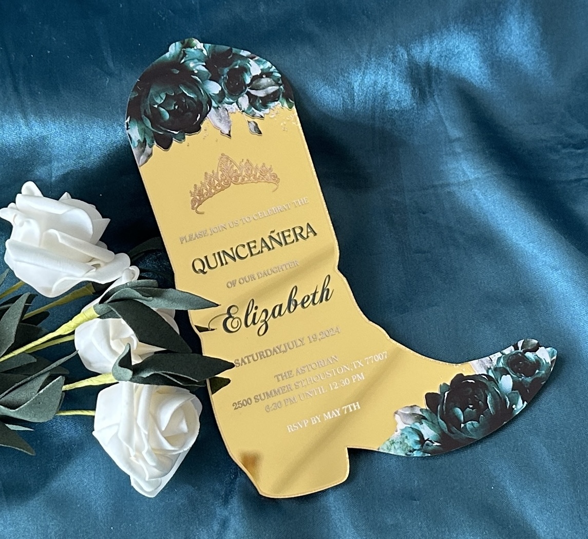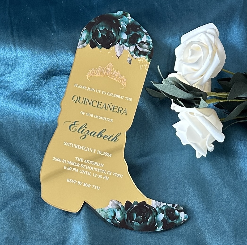 Boot Style Custom 10pcs Acrylic Quinceanera Invitation,Acrylic Baptism ...
