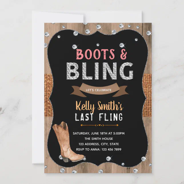 Boots and bling theme party invitation | Zazzle