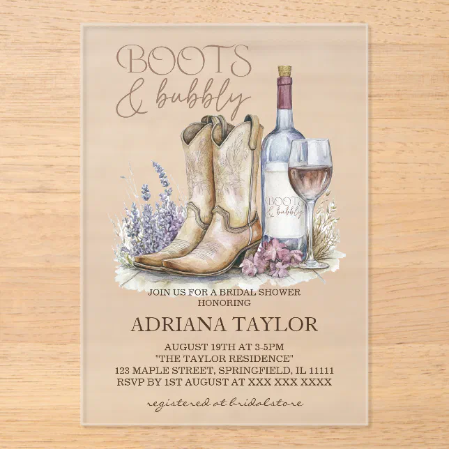 Boots & Bubbly Western Bridal Shower Acrylic Invitations | Zazzle