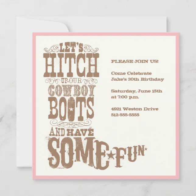 Pink Cowboy Boot Invitations | Zazzle