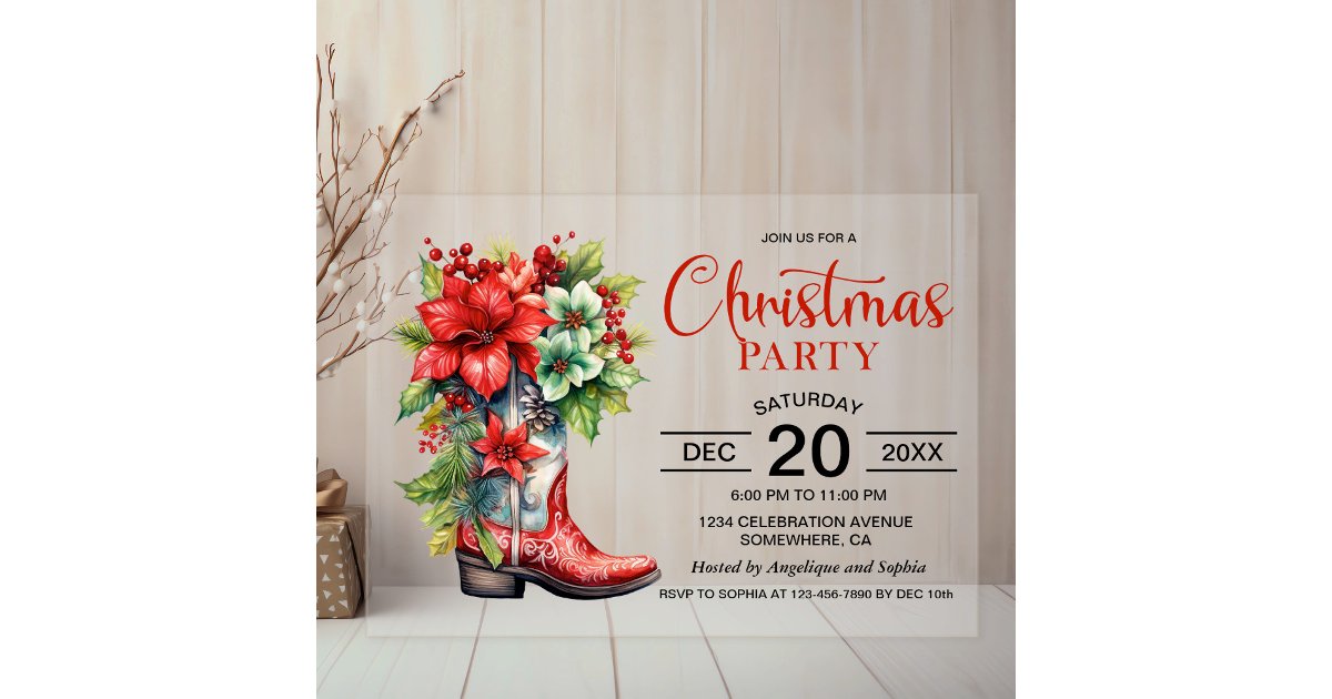 Western Cowboy Boot Christmas Party Acrylic Invitations | Zazzle