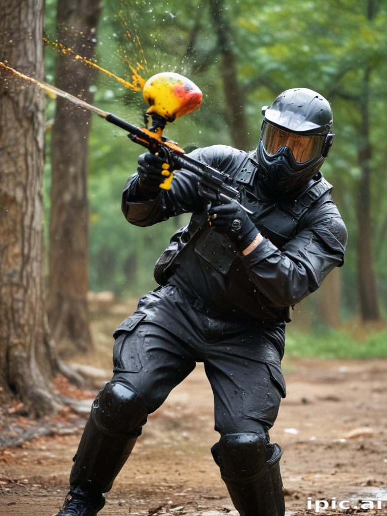 Action-Packed Paintball Player Launching Colorful Paint in Dynamic ...