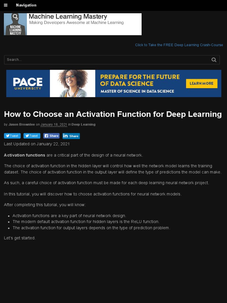 How To Choose An Activation Function For Deep Learning | PDF ...
