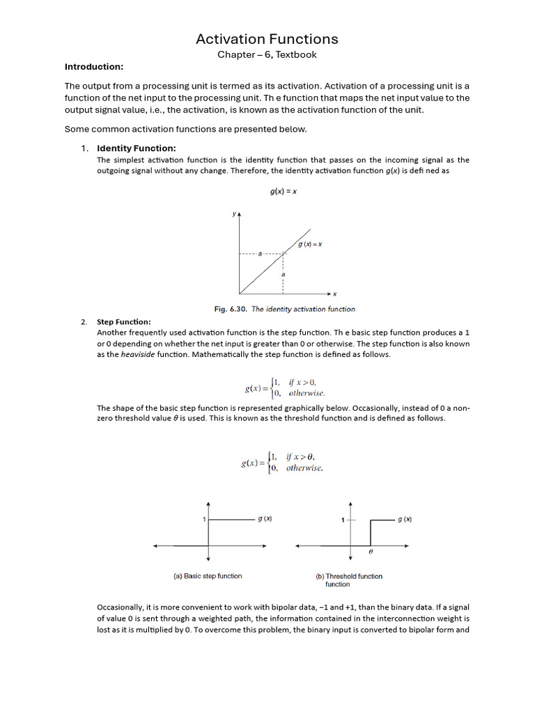 Activation Function | PDF | Function (Mathematics) | Artificial Neural ...
