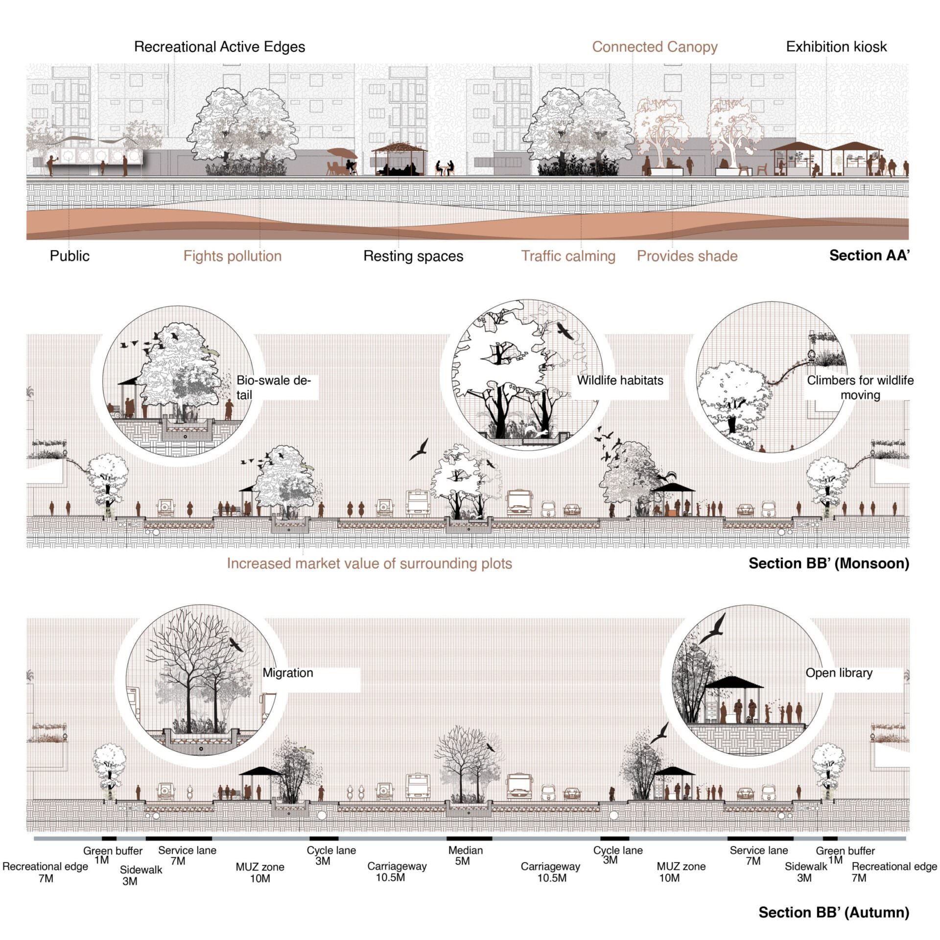Cross-section example | Streetscape design, Urban design concept, Urban ...