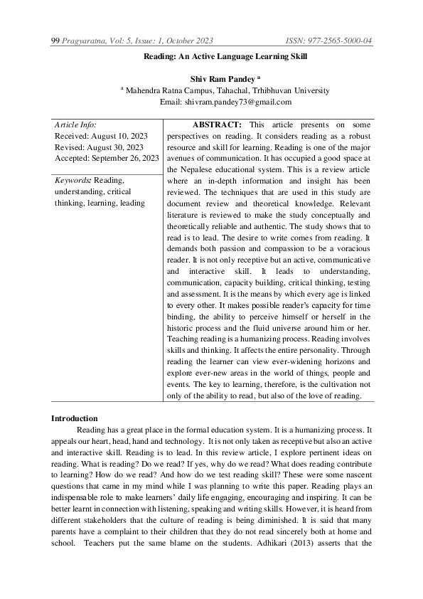 (PDF) Reading: An Active Language Learning Skill