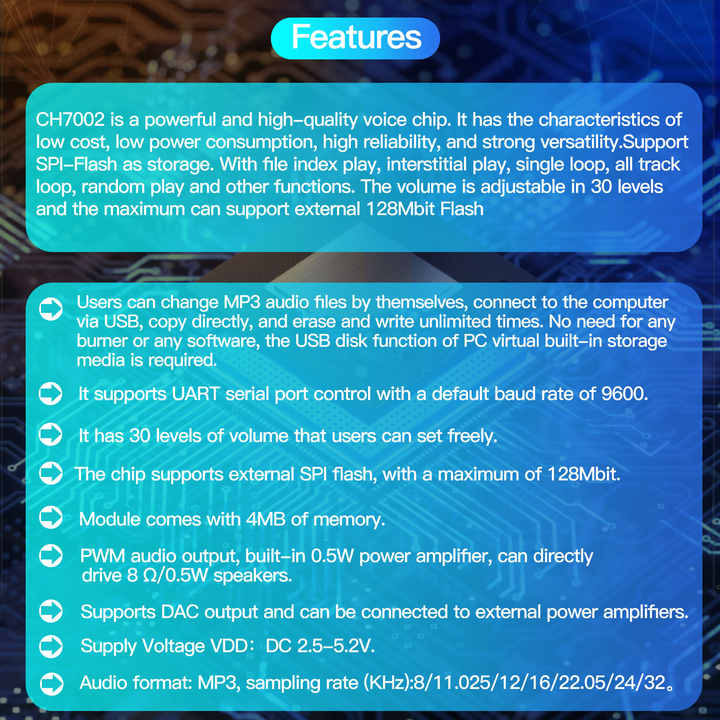 CH7003M Voice Module - MP3 Sound Quality & UART Control