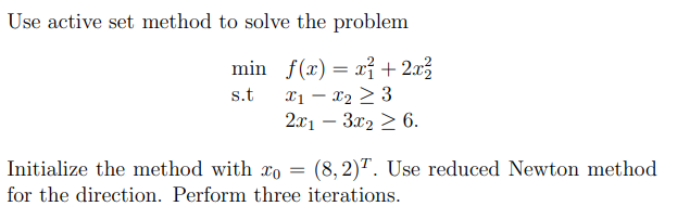 Solved Use active set method to solve the problem min s.t | Chegg.com