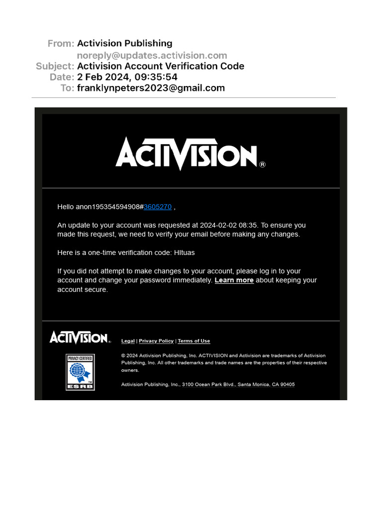 Activision Account Verification Code | PDF