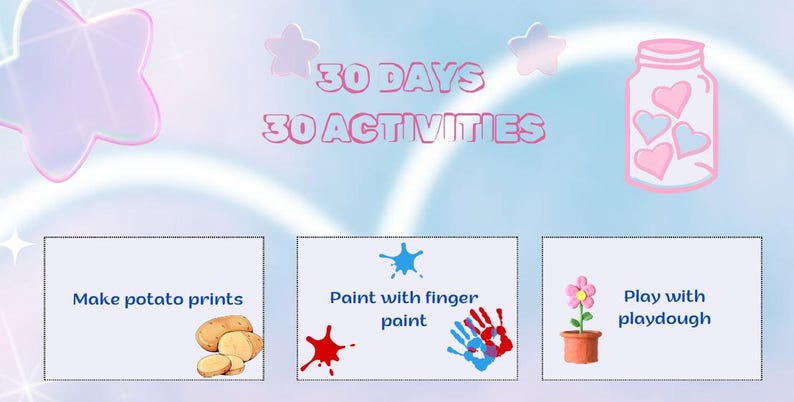 ourhomecreations: 23 kid activity ideas with free printable cards