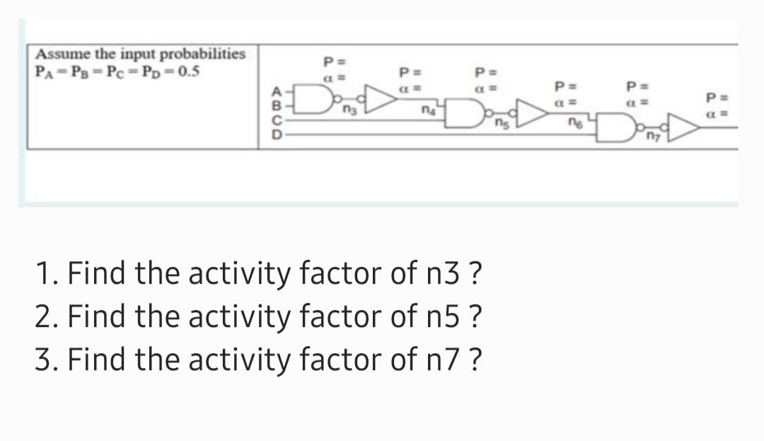 Solved 1. Find the activity factor of n3 ? 2. Find the | Chegg.com