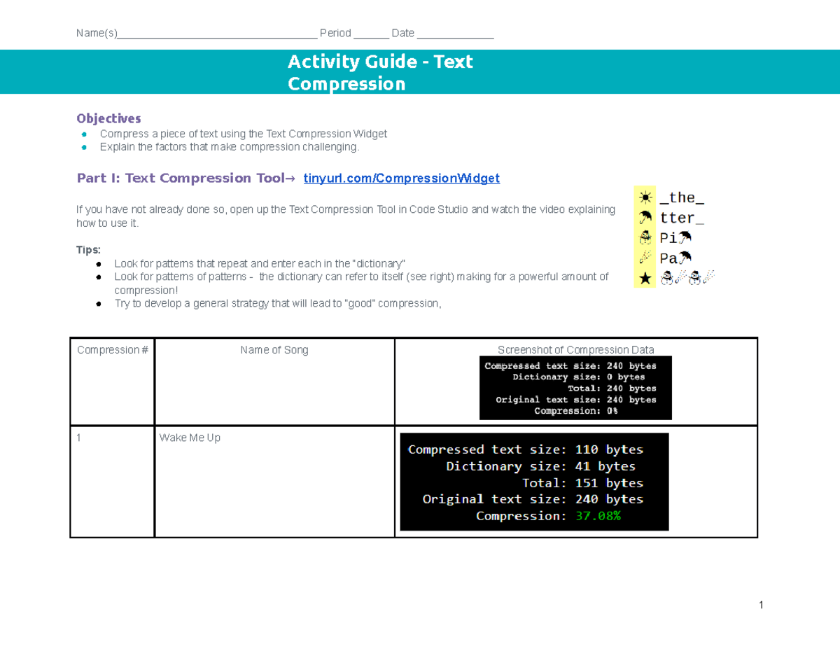 Copy of U2L02 - Activity Guide - Text Compression - Unit 2 Lesson 2 ...