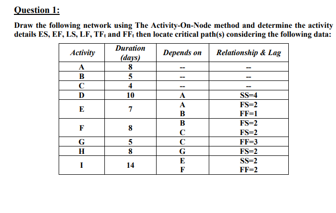 Solved 1. Draw the Activity-on-Node network diagram for the | Chegg.com