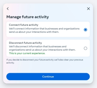 Activity off Meta technologies is currently turned off | LightWidget