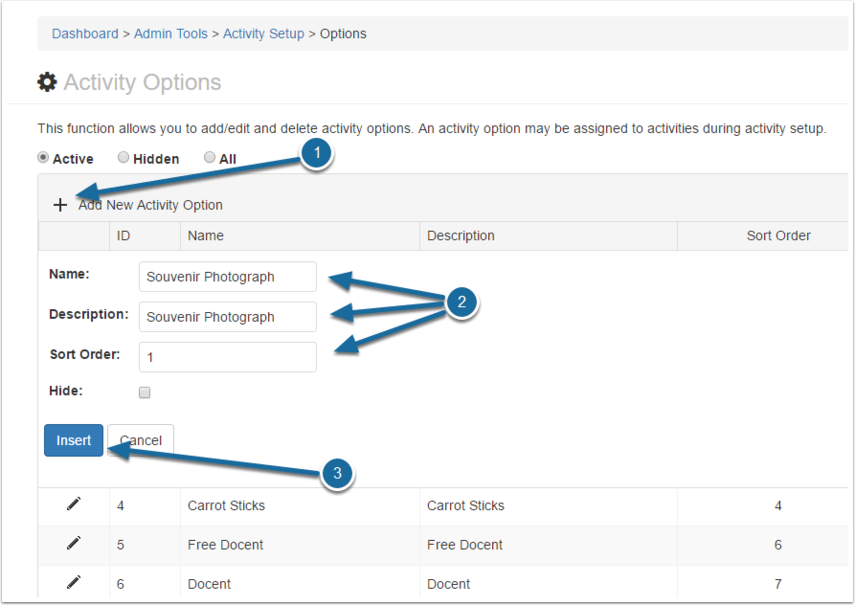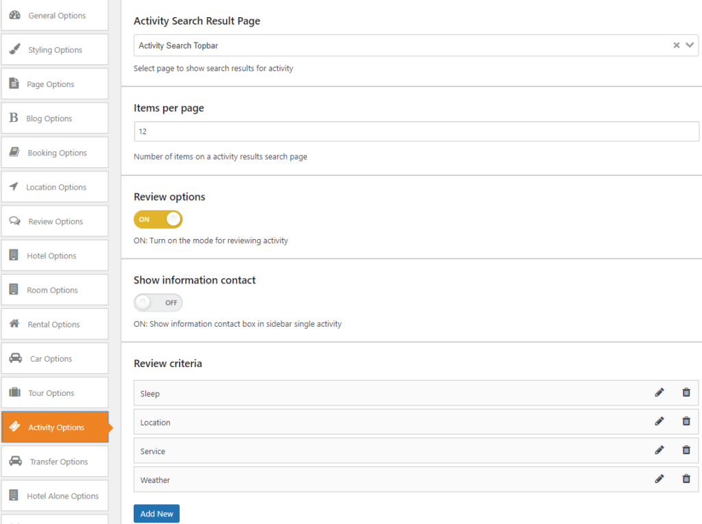 Configure Activity Options in the Admin Panel