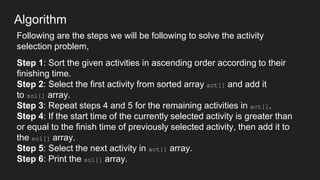 Greedy Algorithms WITH Activity Selection Problem.ppt | Computing ...