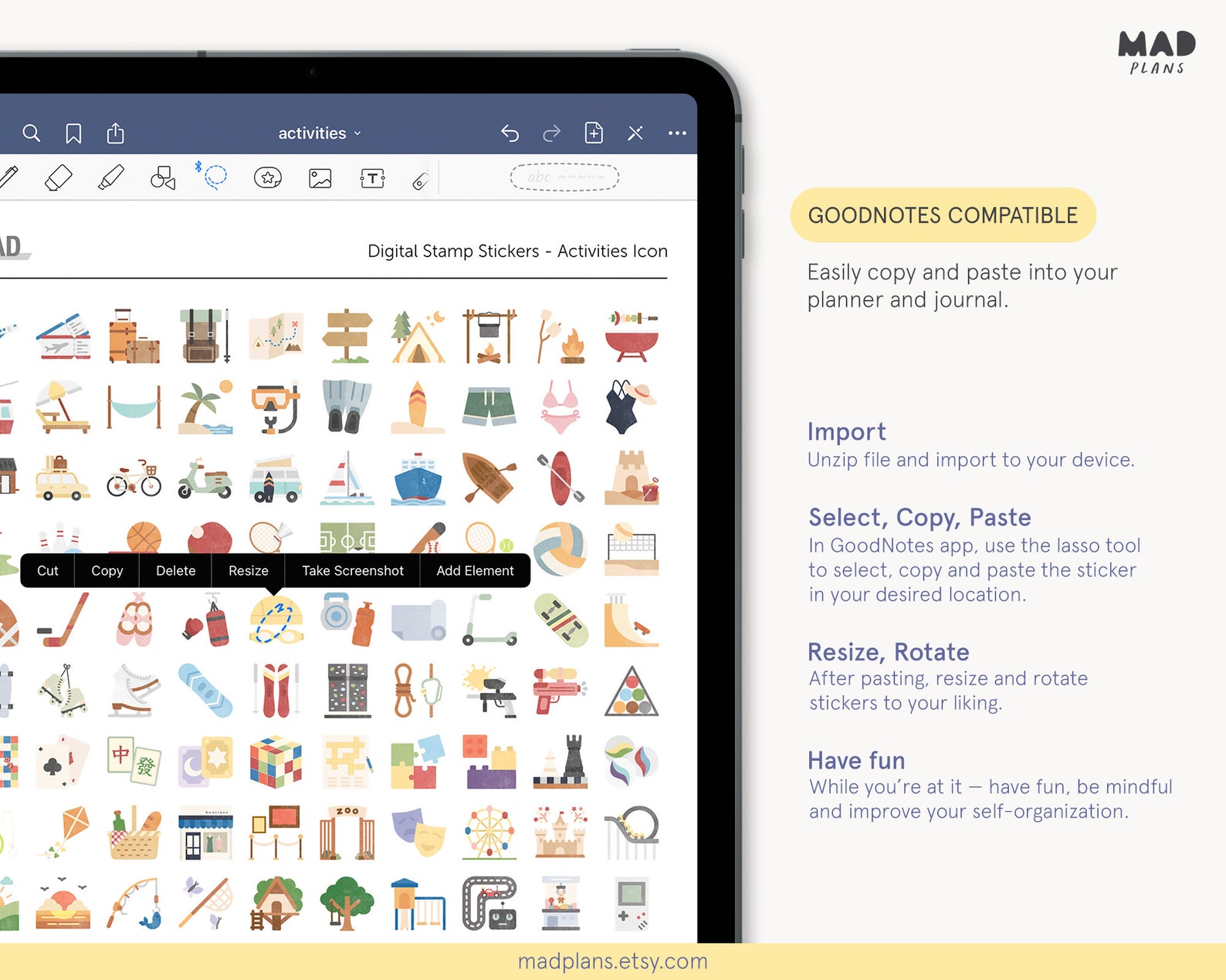 Digital Planner Activity Stickers | Self Care Stickers | Digital iPad ...