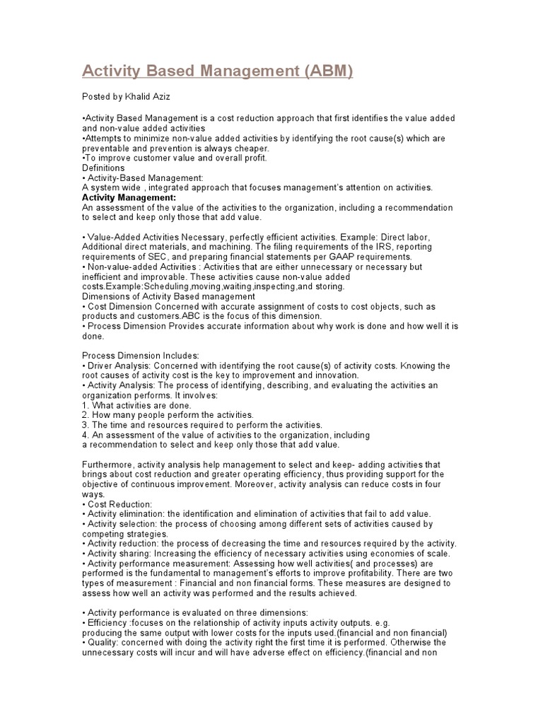 Activity Based Management | PDF | Benchmarking | Value Added