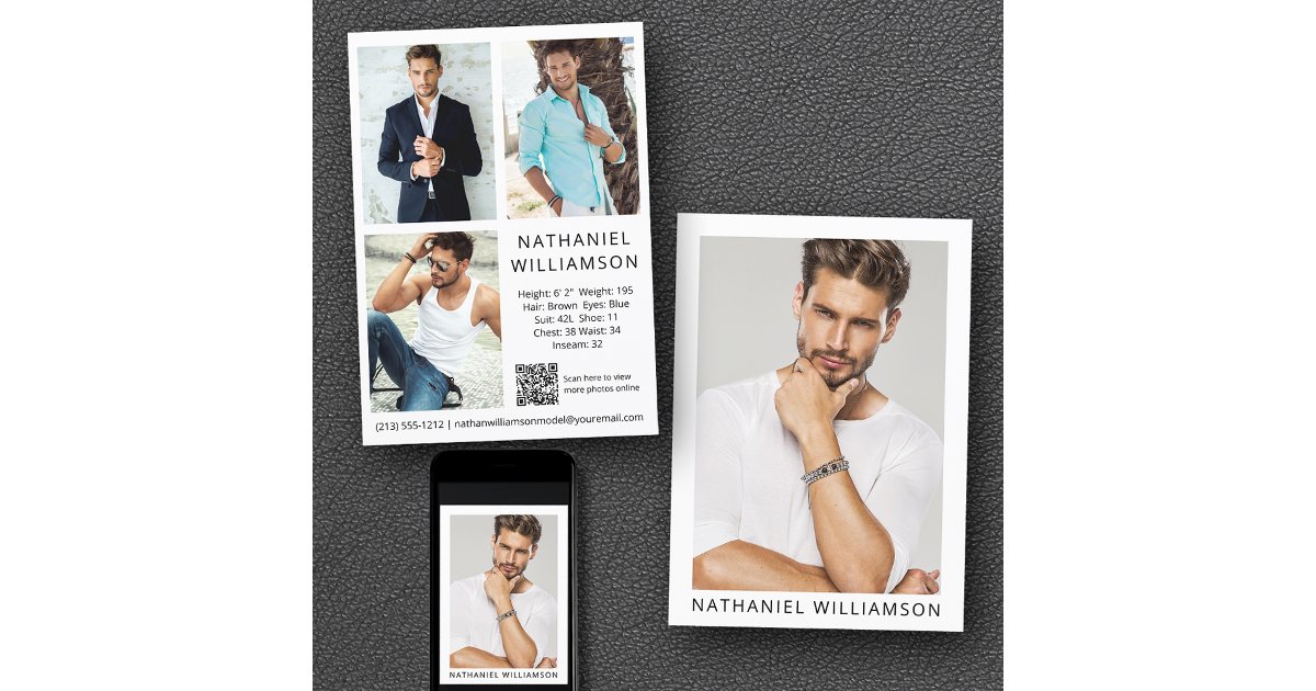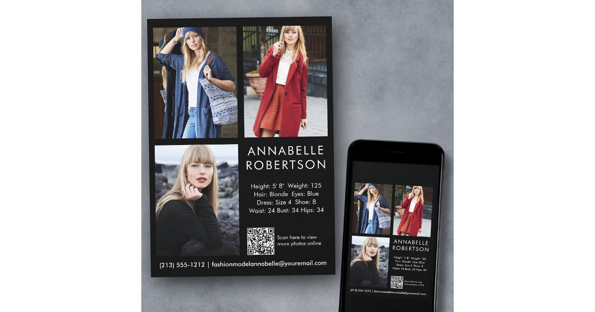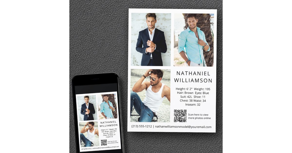 Model Actor QR Code 4 Photo Pro Comp Card | Zazzle