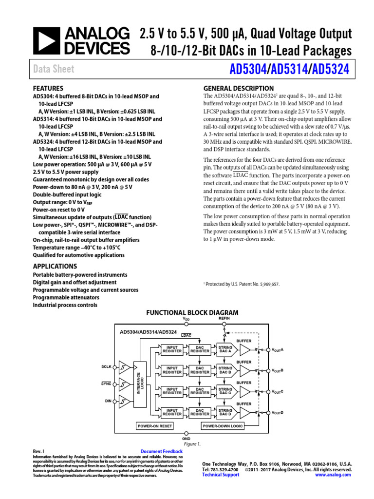 Datasheet AD5325, AD5315, AD5305 Datasheet (Analog Devices)