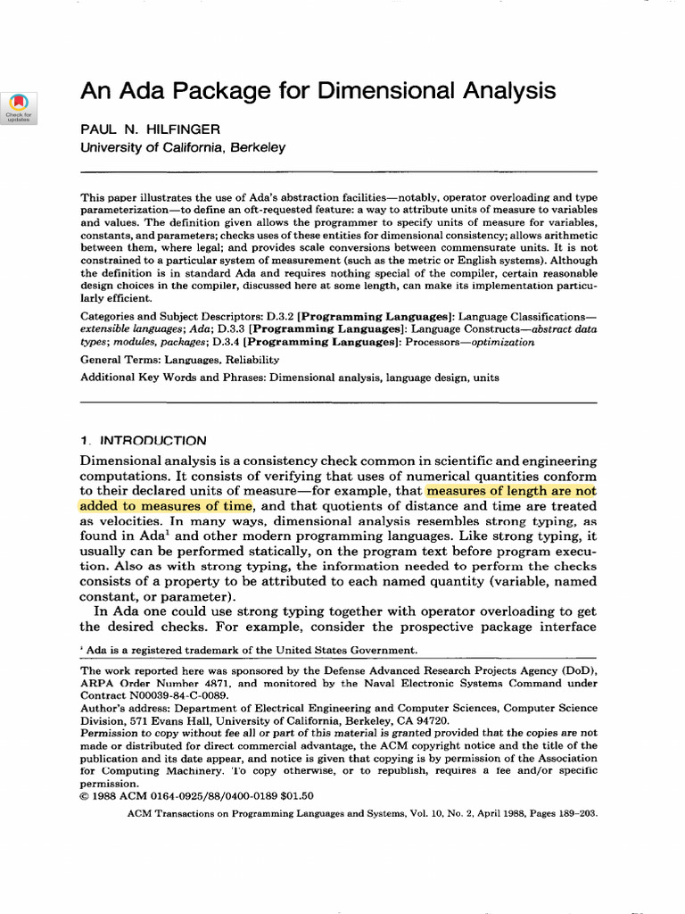 An Ada Package For Dimensional Analysis | PDF | Computing | Software ...