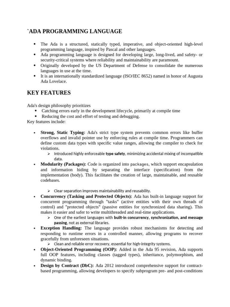 ADA Programming Language - Ada has built-in features that directly ...
