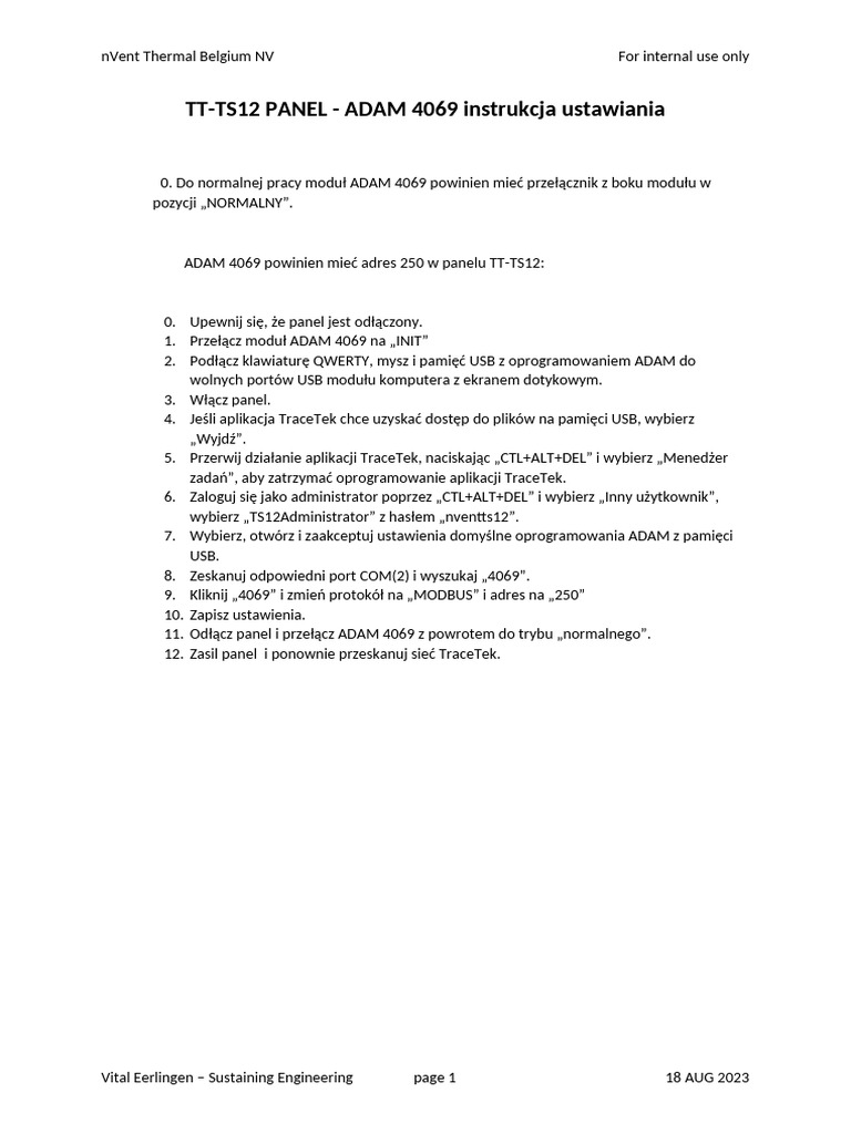 TT-TS12 Touch Screen Calibration PL - ADAM 4069 Settings | PDF