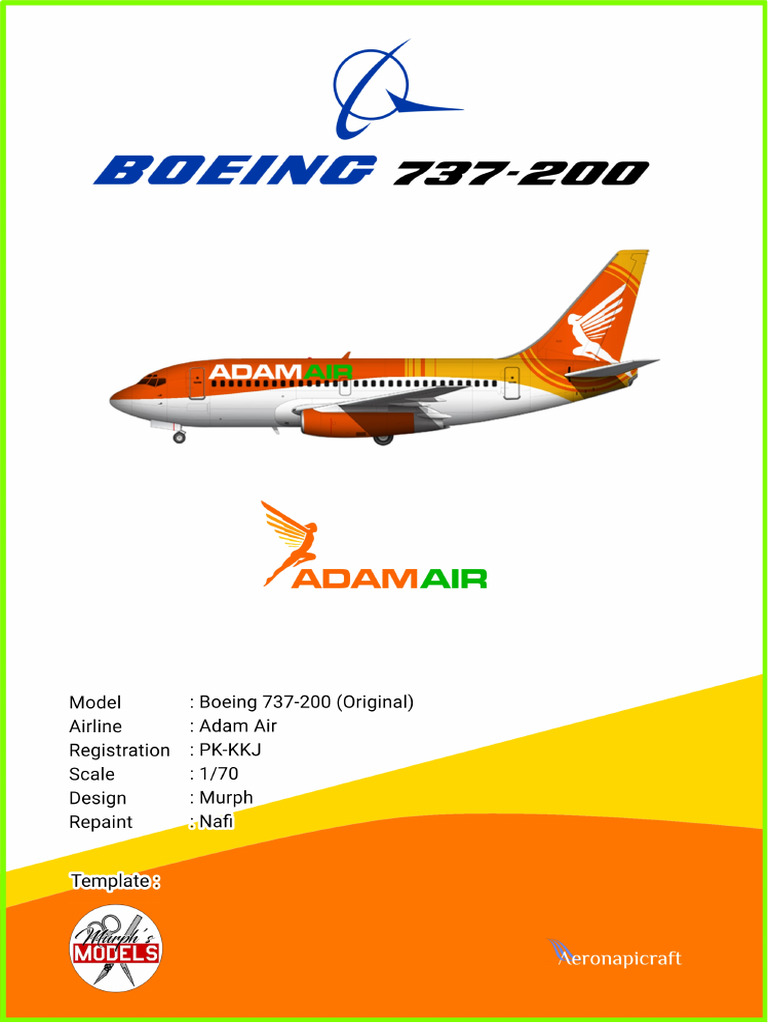 BOEING 737-200 (ORI) 🇮🇩 ADAM AIR (PK-KKJ) PAPERCRAFT REPAINT - YouTube
