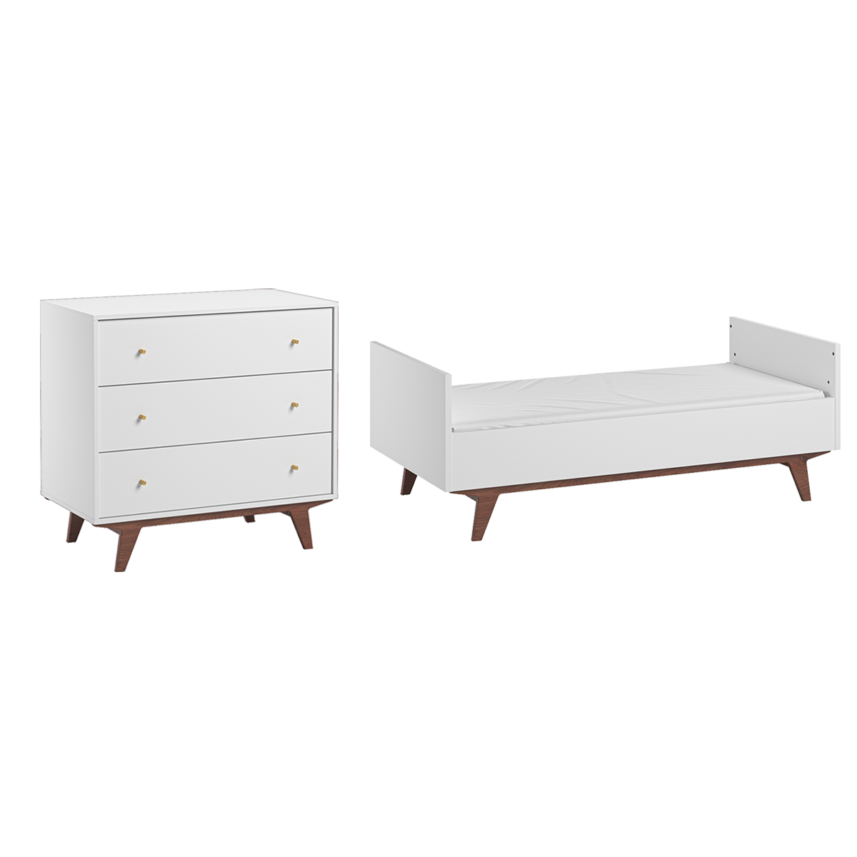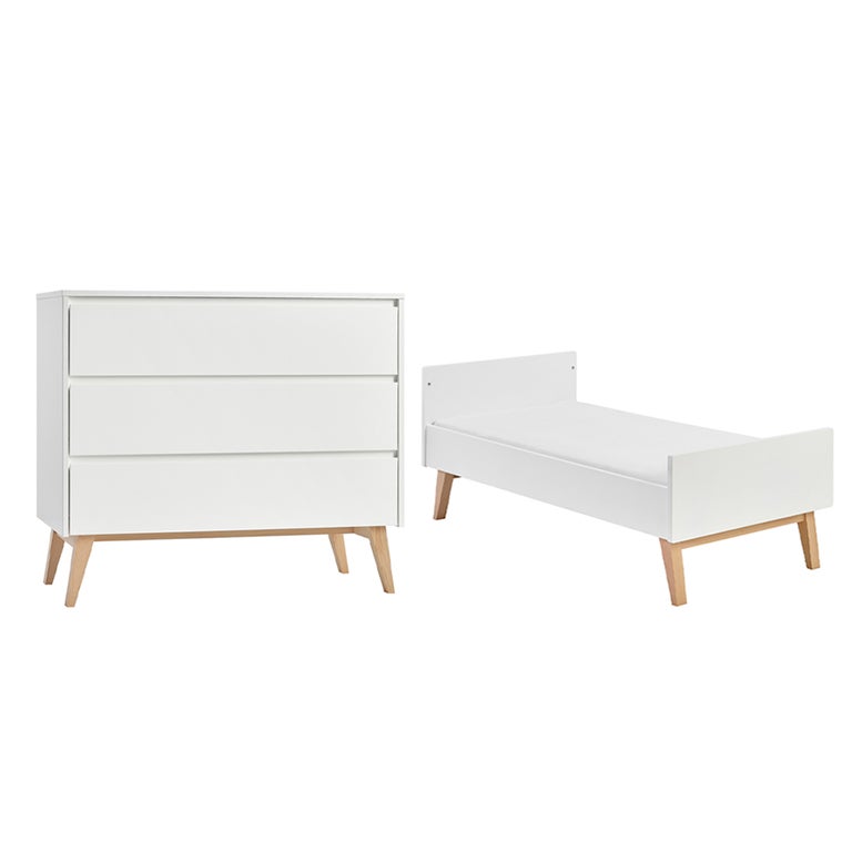 Bellamy Nomi 70x140 cama extraíble y arcón de 3 cajones Blanco y madera ...