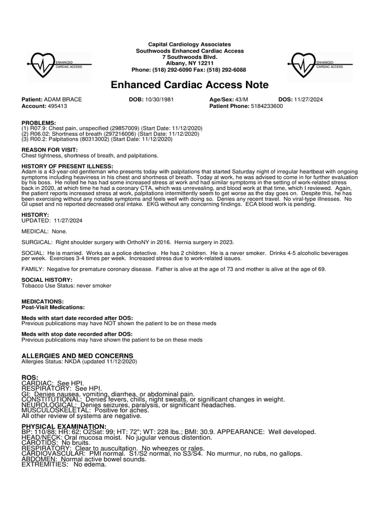 Cardiac Evaluation for Adam Brace | PDF | Cardiology | Clinical Medicine