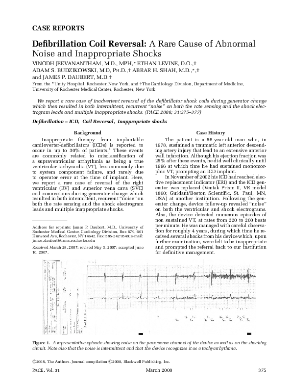 (PDF) Defibrillation Coil Reversal: A Rare Cause of Abnormal Noise and ...