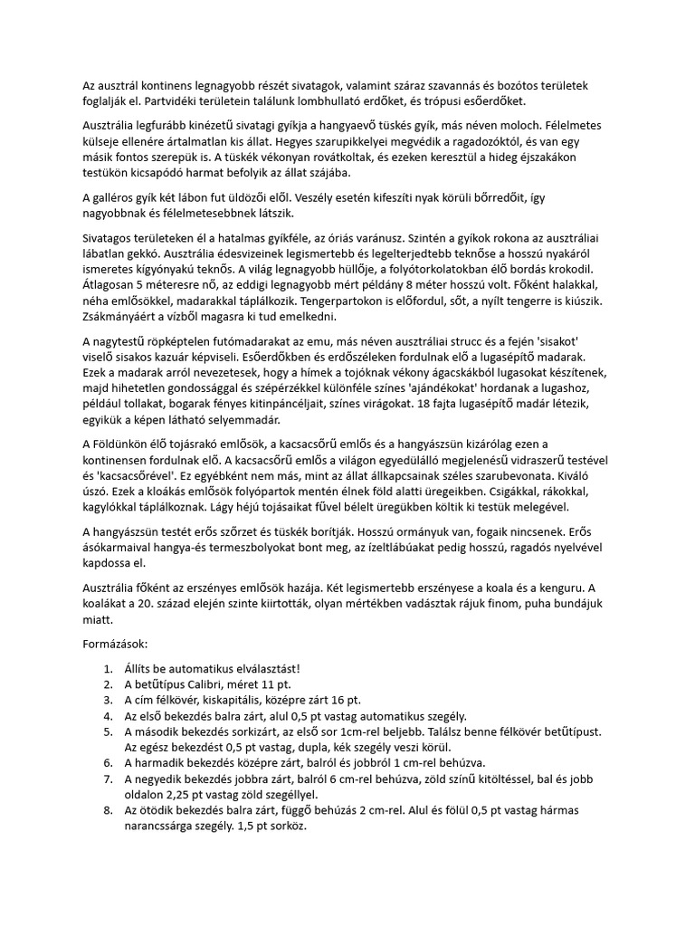 Ausztrália Állatai Nyers | PDF