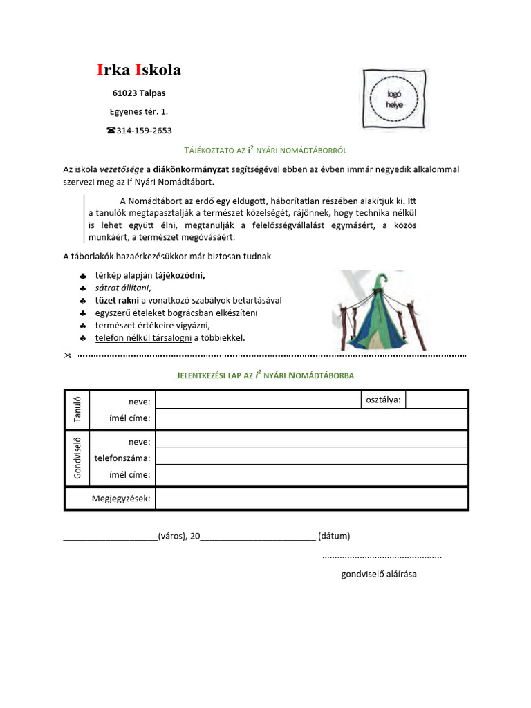 Tájékoztató Nyári Nomád Táborról KÉSZ (Órai Munka) | PDF