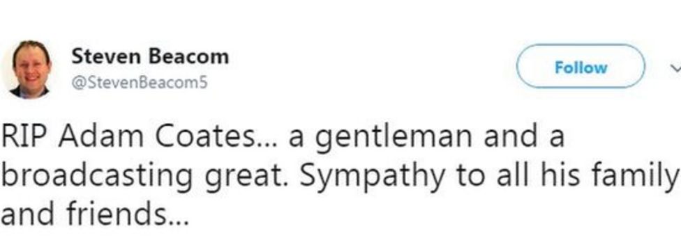 Tributes to 'legendary' BBC sports presenter Adam Coates - BBC News