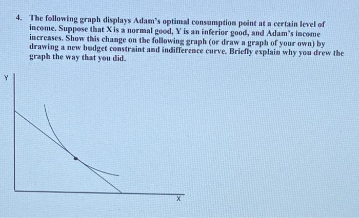 Solved: 4. The following graph displays Adam's optimal consumption ...