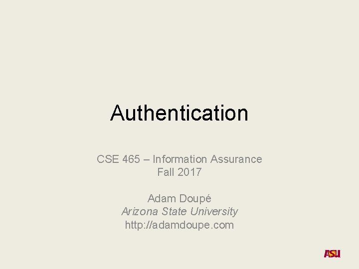 Authentication CSE 465 Information Assurance Fall 2017 Adam