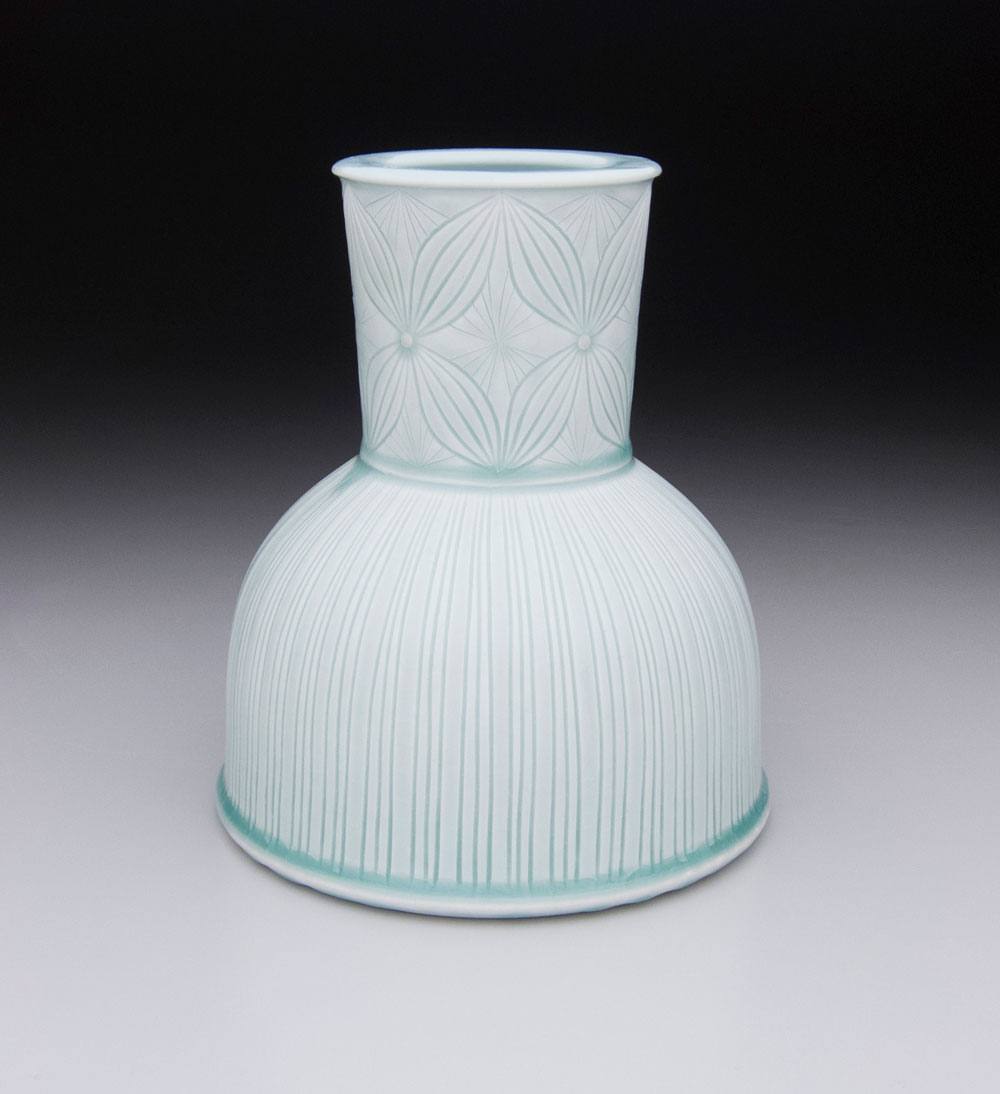 Adam Field - Bell Vase- A Celedon Glazed, Hand-Carved, Porcelain Vase ...