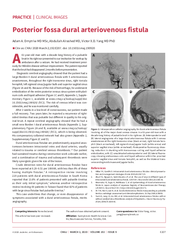 (PDF) Posterior fossa dural arteriovenous fistula | Adam A Dmytriw ...